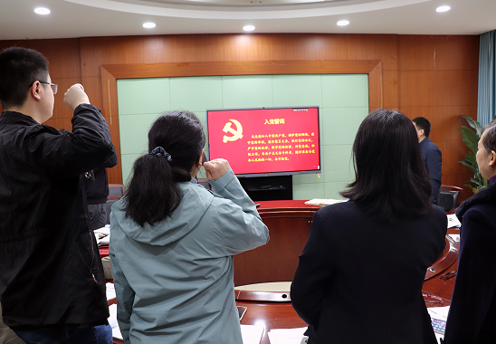 首先,支部党员全体起立奏唱国歌,吴艳同志带领全体党员重温入党誓词,夏鹏同志领读《中国共产党章程》总纲,全体党员现场交纳党费。