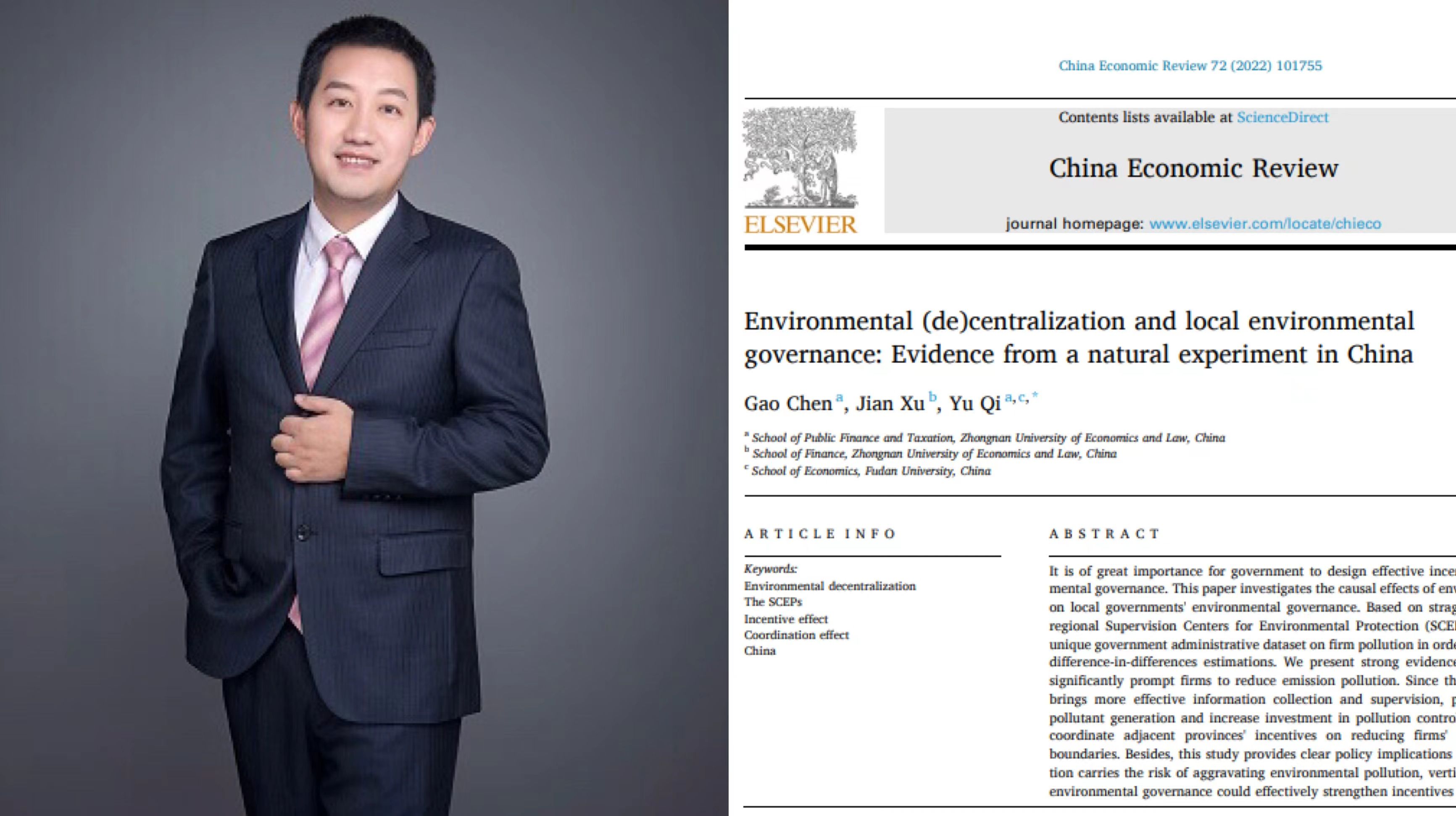 陈高等,Environmental (de)centralization and local environmental governance: Evidence from a natural experiment in China,China Economic Review,Volume 72, April 2022