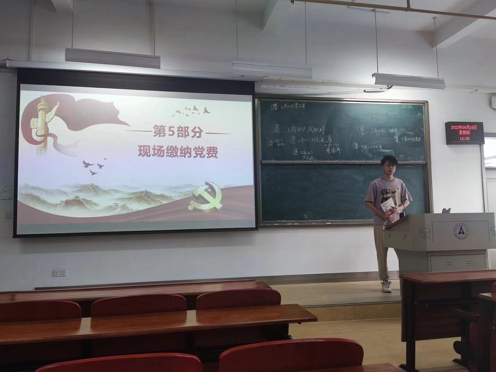 2022年9月15日下午14:30,足球比分球探 本科生第一党支部于南附302教室开展“喜迎二十大,永远跟党走”主题党日活动。会议由钱亭熹同志主持,全体支部成员参加了本次活动。