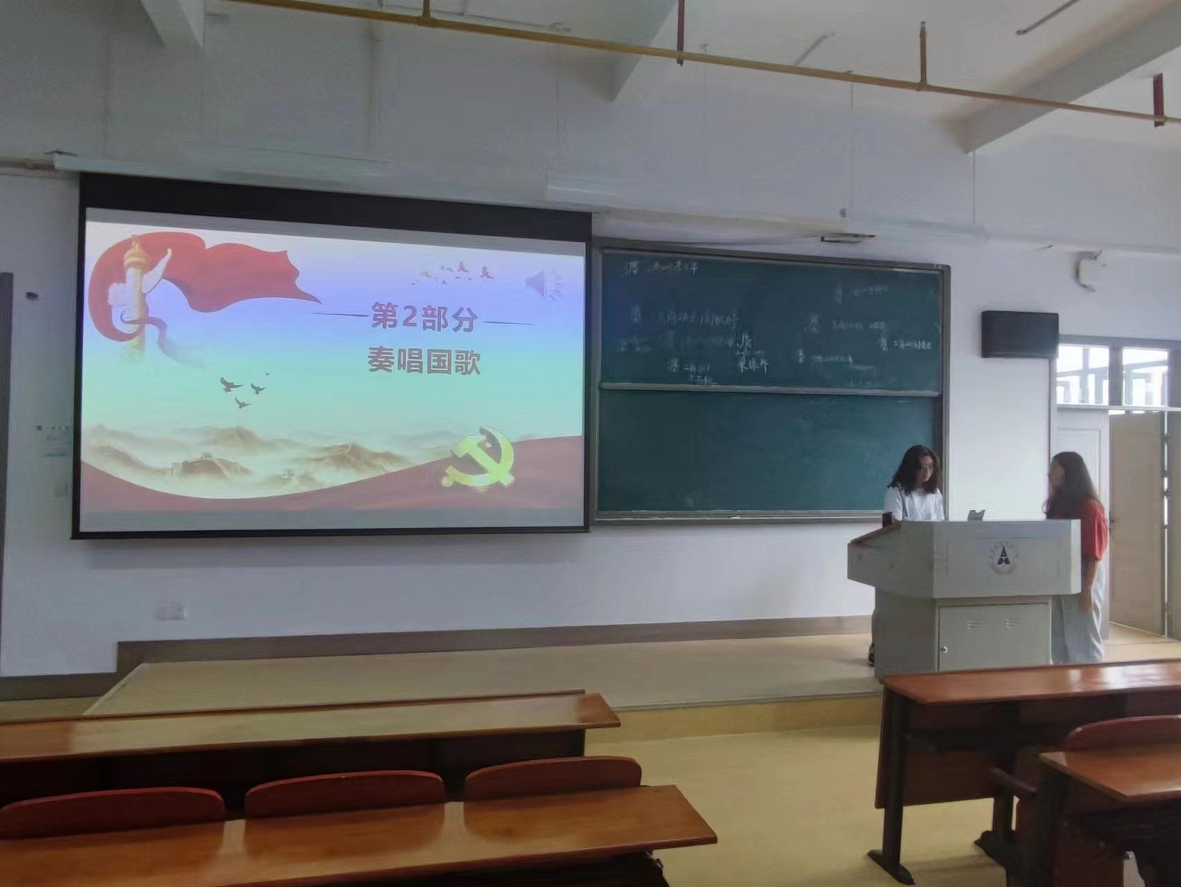 会议第一项,全体起立,奏唱国歌。
