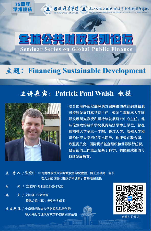 75周年学术校庆讲座 | 全球公共财政系列论坛:爱尔兰都柏林大学Patrick Paul Walsh 教授