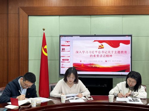 李贝同志领学《教育部召开学习贯彻习近平新时代中国特色社会主义思想主题教育动员部署会》《中共中南财经政法大学委员会关于深入开展学习贯彻习近平新时代中国特色社会主义思想主题教育的实施方案》,全体党员通过深入学习教育部党组决策部署和学校主题教育实施方案,进一步提高政治站位,统一思想认识,牢牢把握“学思想、强党性、重实践、建新功”总要求,坚持学思用贯通、知信行统一,以更加高度的政治自觉、饱满的政治热情、严肃的政治态度,激发师生“奋进新征程 建功新时代”的使命担当。