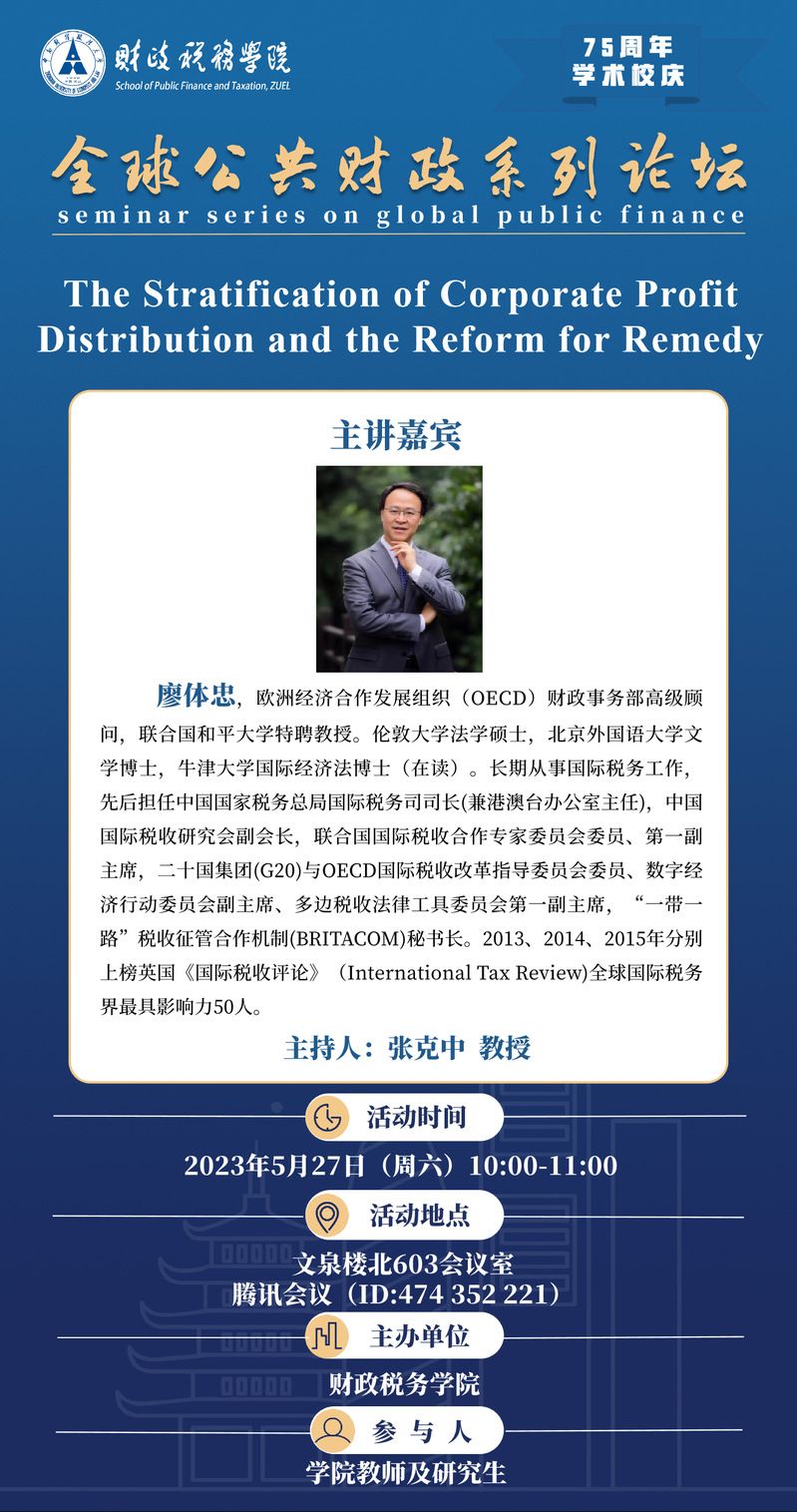 75周年学术校庆讲座 | 全球公共财政系列论坛:欧洲经济合作发展组织(OECD)财政事务部廖体忠教授