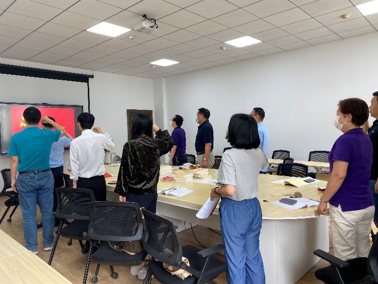全体与会党员奏唱国歌,支委李琼同志带领全体党员重温入党誓词,支委胡海燕同志组织全体党员现场交纳党费,结合本次主题党日活动学习内容,支委陈思霞同志诵读了《中国共产党章程》总纲第二十四自然段和第二十九自然段关于从严治党的内容。