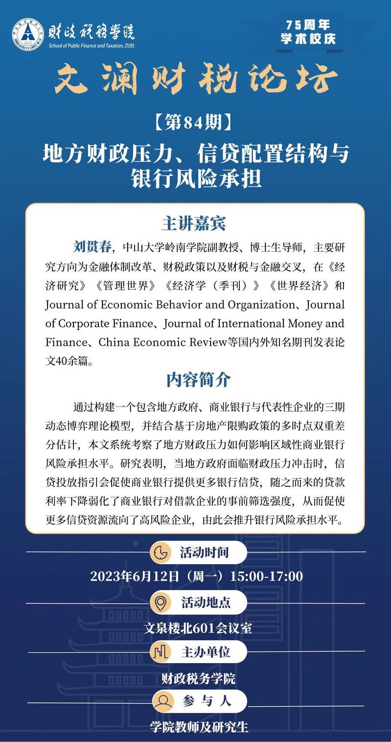 75周年学术校庆讲座 | 文澜足球比分球探论坛(第84期):中山大学刘贯春副教授