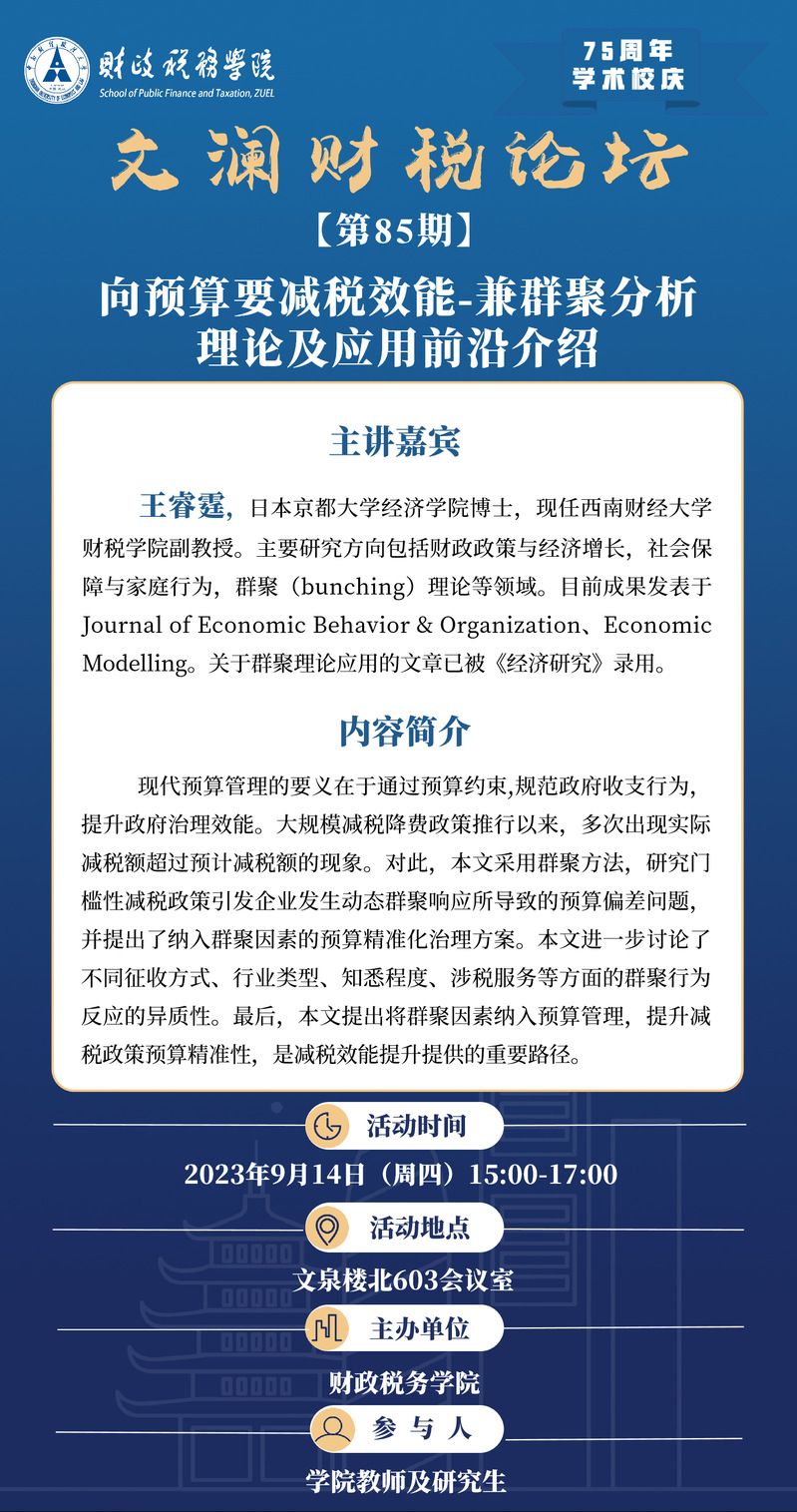 75周年学术校庆讲座 | 文澜足球比分球探论坛(第 85期):西南财经大学王睿霆副教授