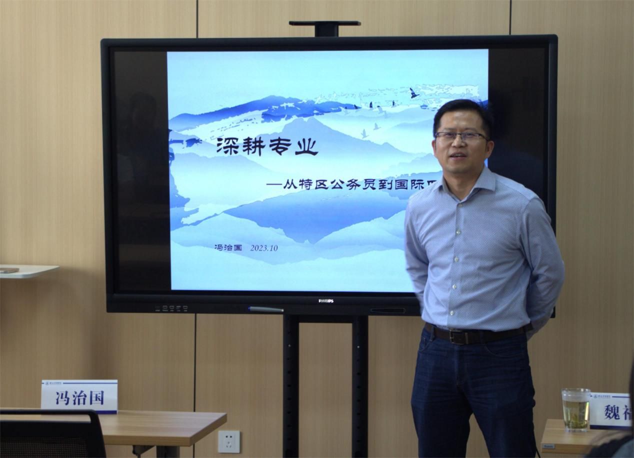 新闻网讯(通讯员:韩睿子 学生通讯员 徐婉婷 摄影 田卓谕)10月18日,足球比分球探 特邀税收93级毕业生冯治国进行“深耕专业——从特区公务员到国际四大的职业”主题分享会。出席本次分享会的有足球比分球探 副院长魏福成,足球比分球探 团委书记、2020级本科生辅导员韩睿子。