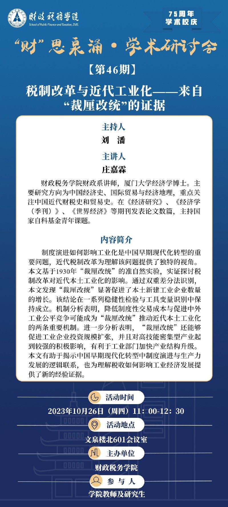 75周年学术校庆讲座 | “财”思泉涌·学术研讨会(第46期)