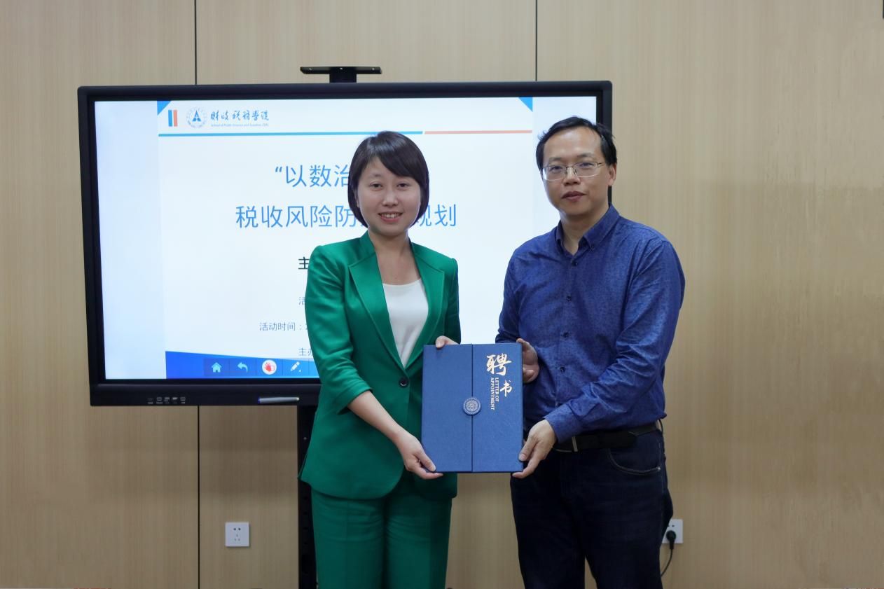 会议开始,薛钢副院长为同学们介绍了本次分享会主讲人并进行了聘书授予仪式。顾玉蕊现为中国注册税务师、中南财经政法大学校外导师,她还曾在税务局稽查部门任职多年,对税收问题有着独特和深刻的见解。