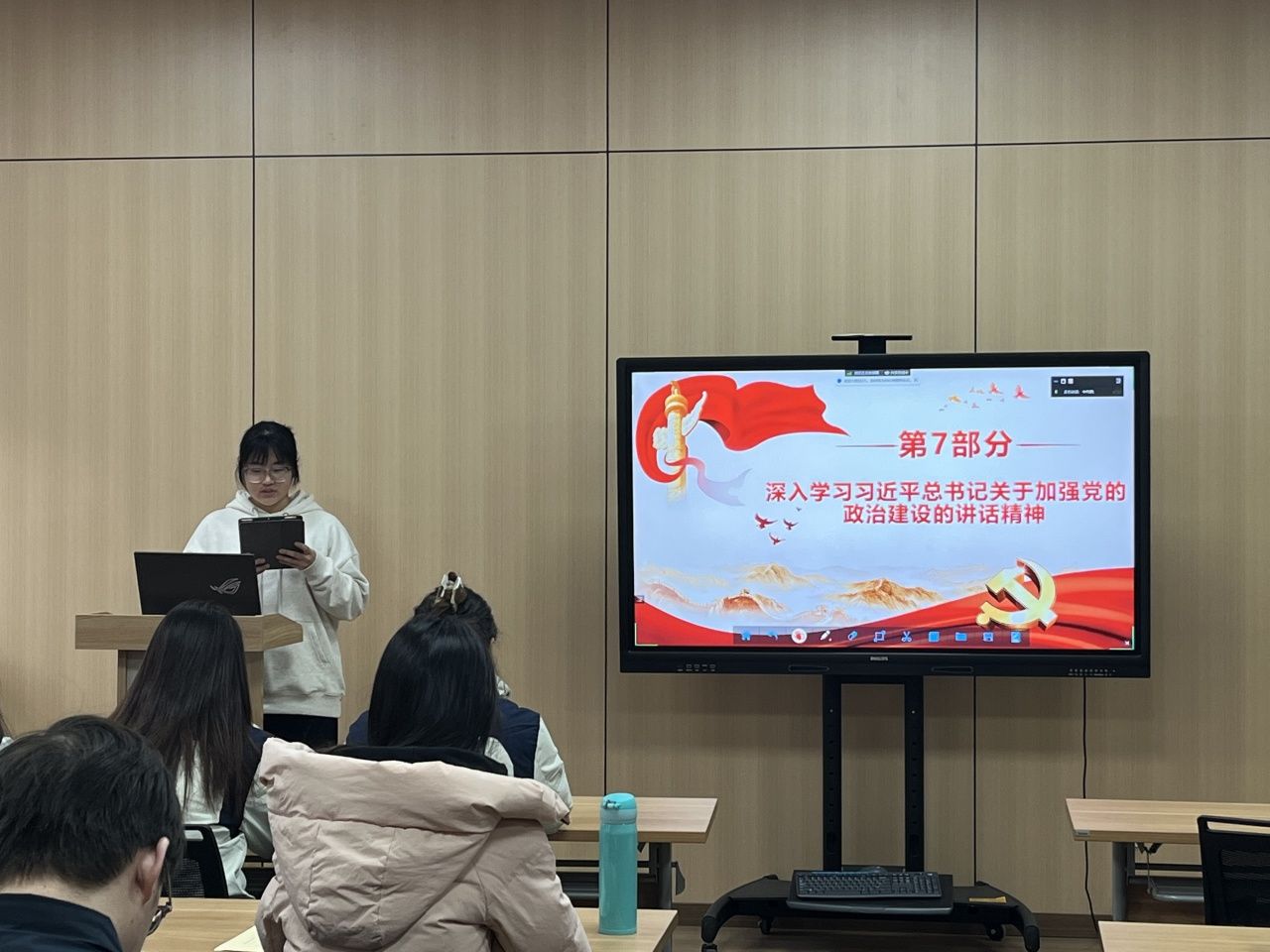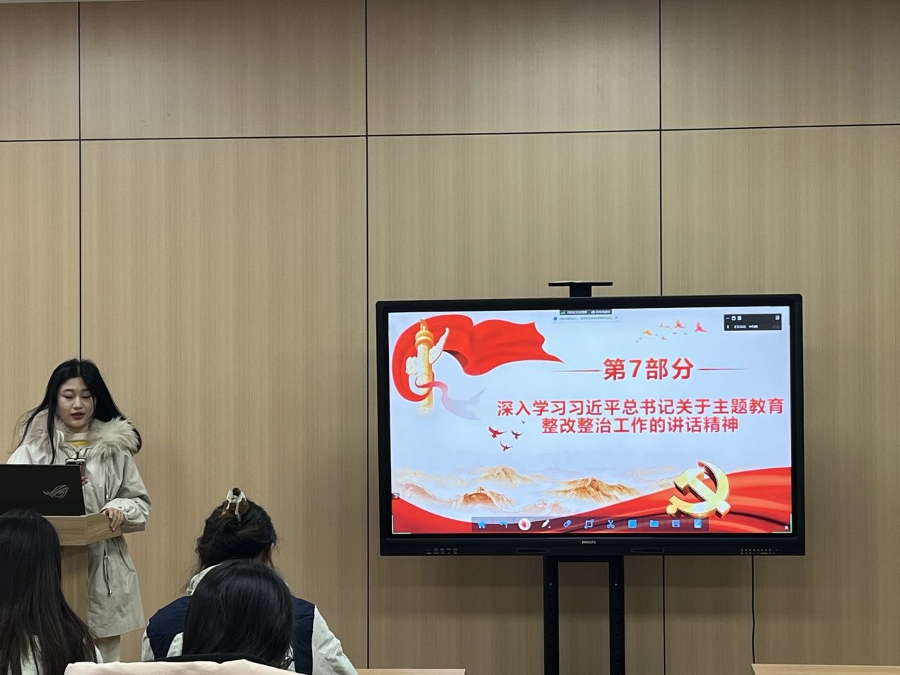 最后,在霍妍君同志的带领下,全体支部成员深入学习了习近平总书记关于主题教育的最新讲话精神。9 月以来,习近平总书记在多个场合就抓好主题教育提出明确要求,强调要把实的要求贯穿主题教育全过程,坚决防止和克服形式主义、官僚主义,实实在在抓好理论学习和调查研究,实实在在检视整改突出问题,实实在在办好惠民利民实事,用实干推动发展、取信于民。同时,各二级党委、各党支部还应按照上级关于开展第一批主题教育整改落实情况“回头看”的要求部署,不断巩固深化整改整治成果,确保主题教育整改整治各项措施不折不扣落到实处,深刻回答好“教育强国,高校何为”的时代课题。