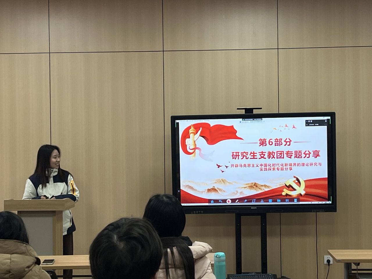 会议第四项,由研究生支教团开展以“开辟马克思主义中国化、时代化、新境界的理论研究与实践探索”为主题的专题分享。