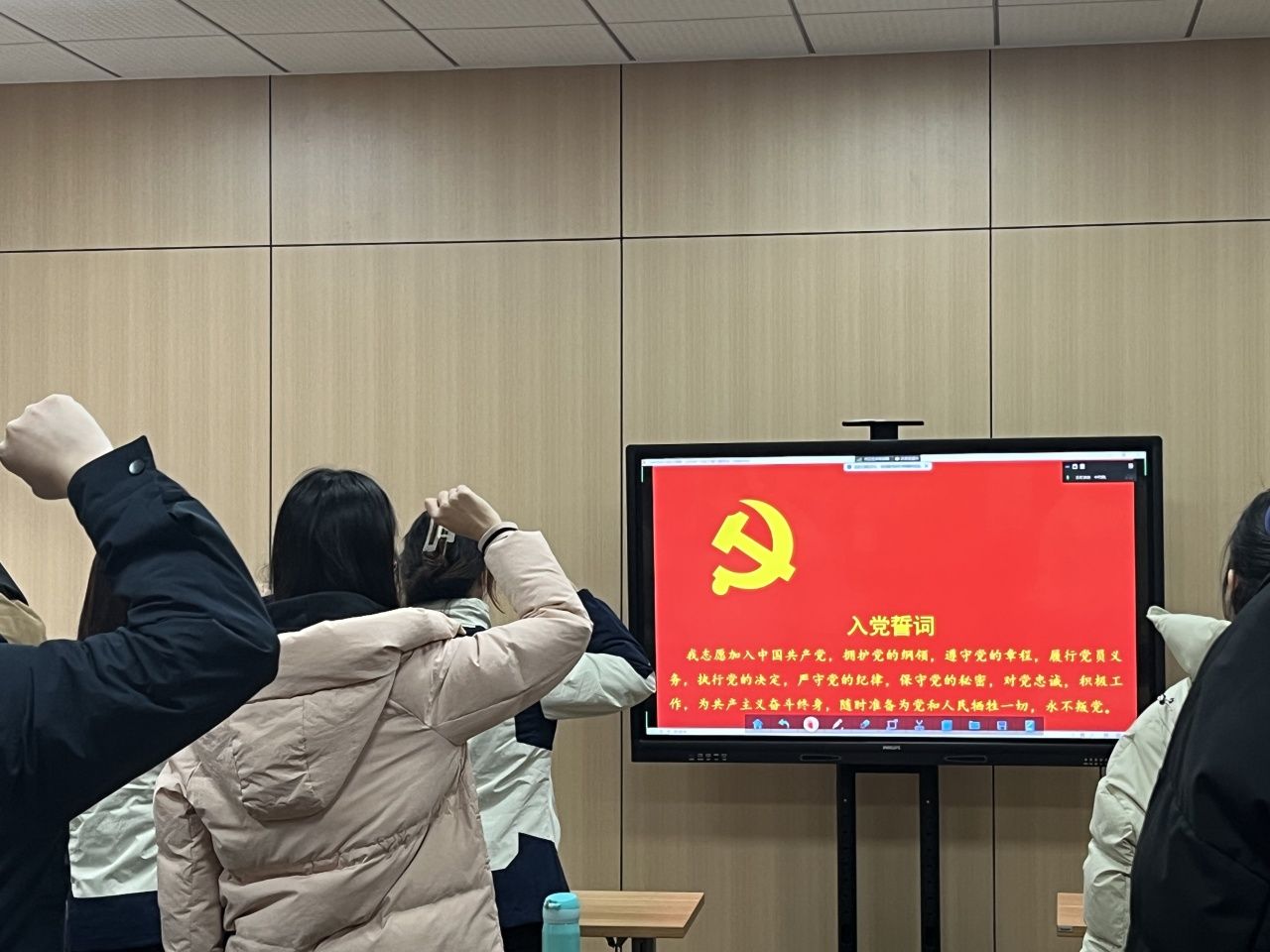 会议第二项,支部全体成员起立,面向党旗举起右拳,由申有鹏同志领读,重温入党誓词。