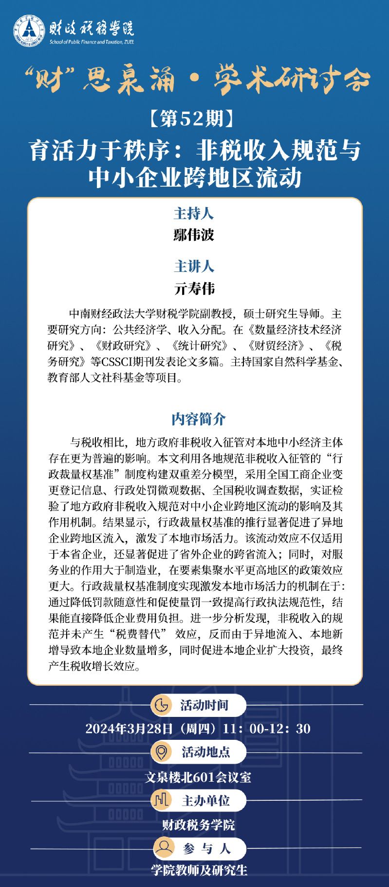 【讲座预告】“财”思泉涌·学术研讨会(第52期)