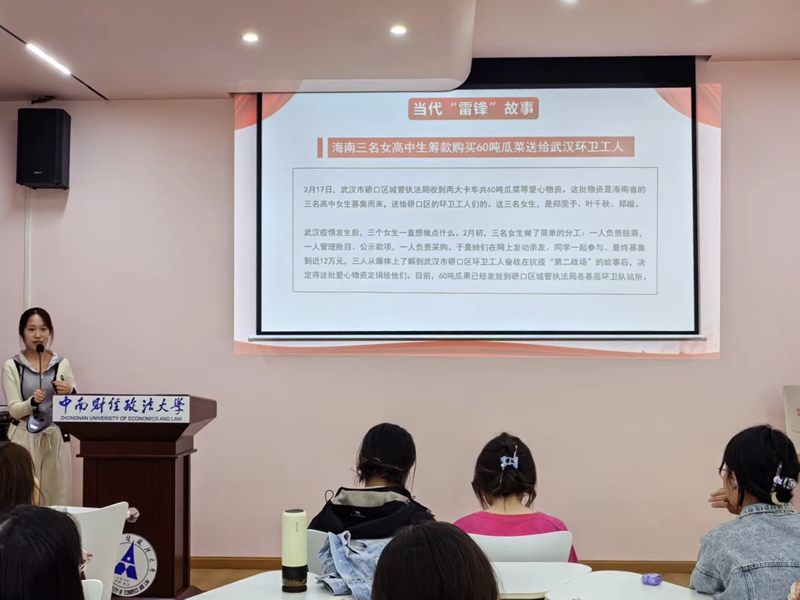 财政2303团支部组织观看电影《雷锋》,发起“学雷锋,做好事”活动,号召同学们用实际行动践行雷锋精神,活动期间,同学们积极参与社区服务、爱心捐步、支教助残等志愿服务活动,传播爱与善意。财政2305团支部带领同学们走进武昌蛇山烈士祠,感悟革命先烈崇高奉献精神,组织评选“志愿服务优秀寝室”,联合足球比分球探 志愿者协会开展为山区孩子写信活动,鼓励同学们从身边小事做起,奉献自己的力量。