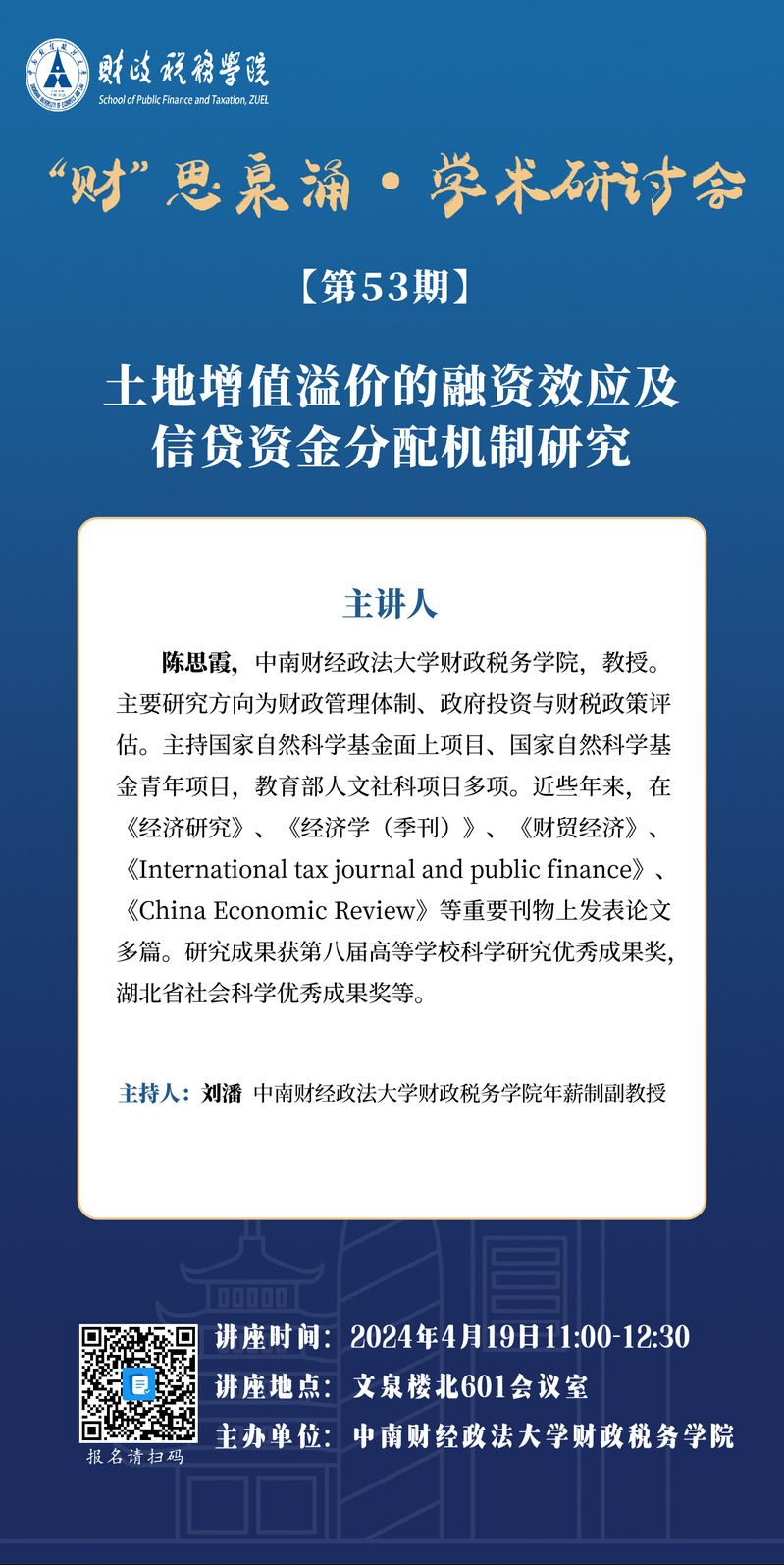 【讲座预告】“财”思泉涌·学术研讨会(第53期)