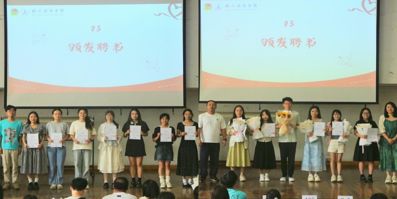 大会第三项,由木拉提老师,钟唯老师及以及上一届主要学生骨干为骨干代表颁发聘书。