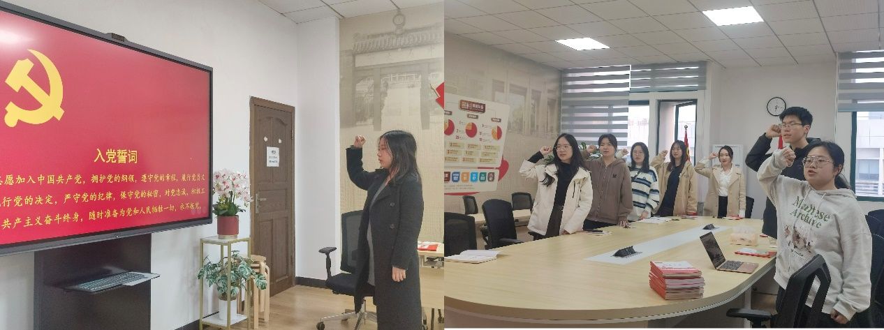 首先,支部党员全体起立奏唱国歌,刘旻妤同志带领全体党员重温入党誓词,领学《中国共产党章程》总纲节选。全体党员现场交纳党费。