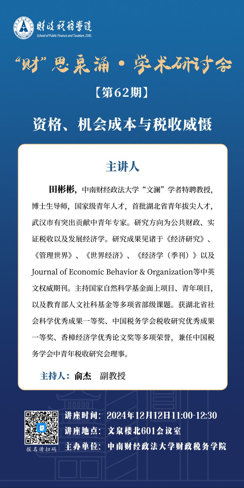 【讲座预告】“财”思泉涌·学术研讨会(第62期)