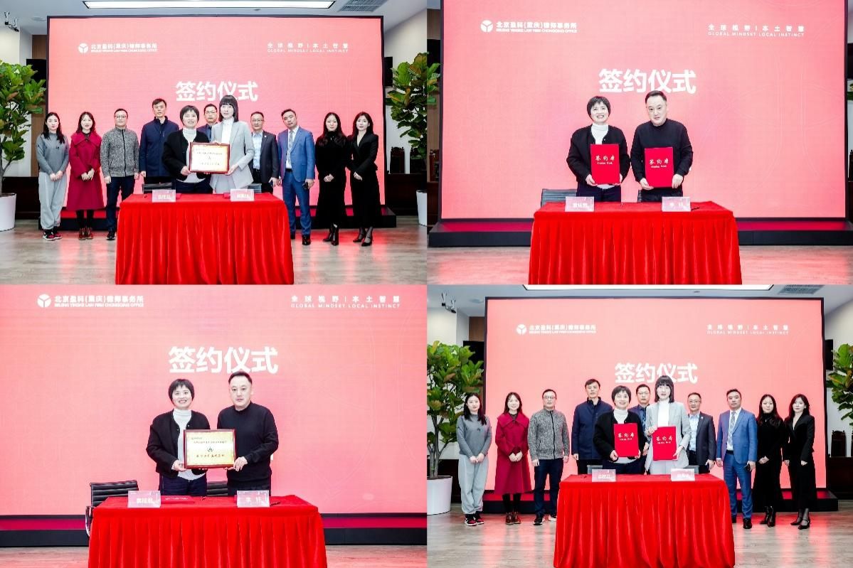 会议最后,现场举办签约仪式。足球比分球探-球探网即时比分足球 党委书记袁桂君分别与盈科重庆执行主任赵素仙、重庆西开园区运营管理有限公司董事长李轩签订合作共建协议,并为实习实训基地授牌。
