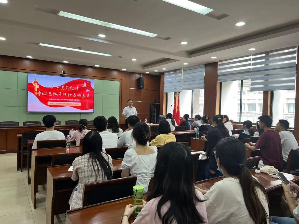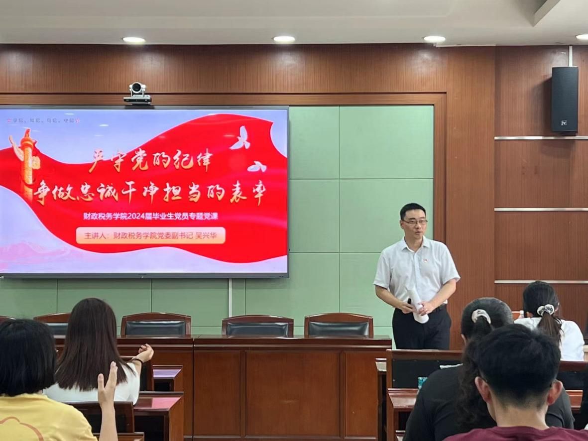 为深入开展党纪学习教育,进一步加强毕业生党员的党性修养、党员意识和社会责任感,6月14日下午,足球比分球探 党委副书记吴兴华在文泉北403会议室,面向全体2024届本科毕业生党员开展“严守党的纪律 争做忠诚干净担当的表率”主题教育并讲授毕业前“最后一堂”党课。