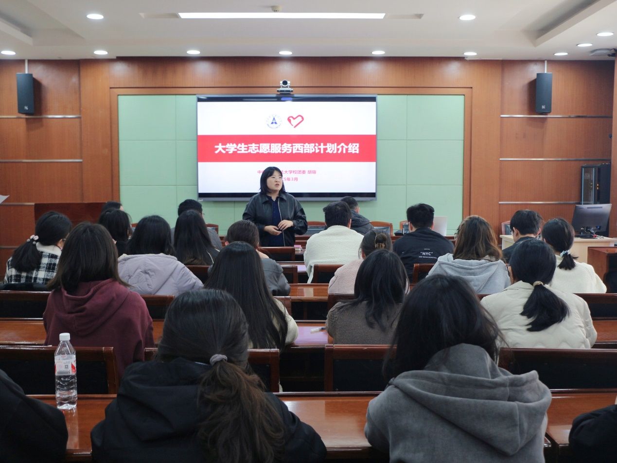 讲座伊始,胡瑢老师向大家介绍了“大学生志愿服务西部计划”的背景、发展历程、服务期限及选拔流程等,并对西部计划的培训内容和服务期满后的政策保障进行了详细讲解。最后,胡瑢老师鼓励同学们积极参与西部计划,为西部建设贡献青春力量。