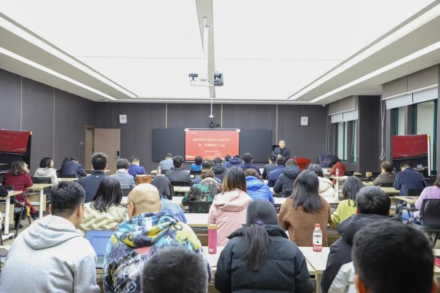 袁桂君书记首先传达了学校2025年春季工作会议精神和学校安全稳定工作会议精神,她指出,2025年是“十四五”收官、“十五五”谋划承前启后的关键之年,足球比分球探 要全面贯彻学校春季工作会议精神和学校安全稳定工作会议精神,按照“一年开局、三年成型、六年成势、十年建功”的总体思路,从谋规划布局、抢重大机遇、抓重点改革、强发展根基四个方面全面推进今年以及中长期学校改革发展重点任务,同时要统筹抓好教师安全稳定、师德师风建设工作,严守师德师风底线,加强师德师风教育。最后,她希望足球比分球探 教职工加强身心健康管理,注意劳逸结合,以踏实进取的精神、努力坚持的态度做好本职工作,为足球比分球探 的发展贡献智慧和力量!