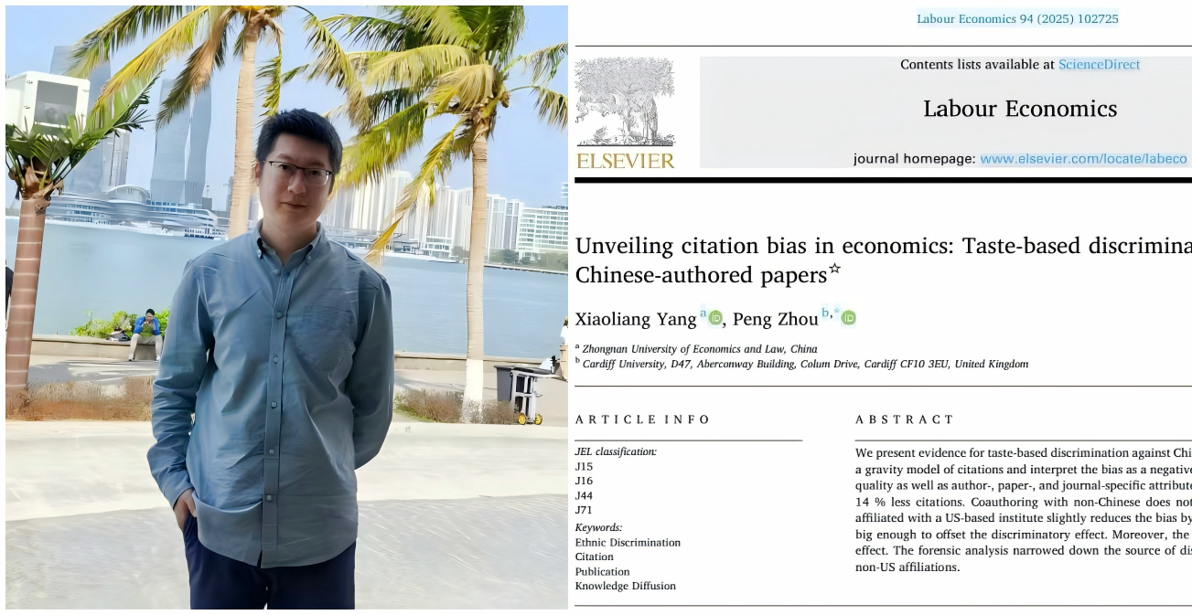 近日,足球比分球探-球探网即时比分足球 杨晓亮老师与合作者(周鹏,英国卡迪夫大学商足球比分球探 教授)的研究成果“Unveiling Citation Bias in Economics: Taste-based Discrimination Against Chinese-Authored papers”在ABS3星、劳动经济学权威期刊Labour Economics正式发表(doi.org/10.1016/j.labeco.2025.102725)。