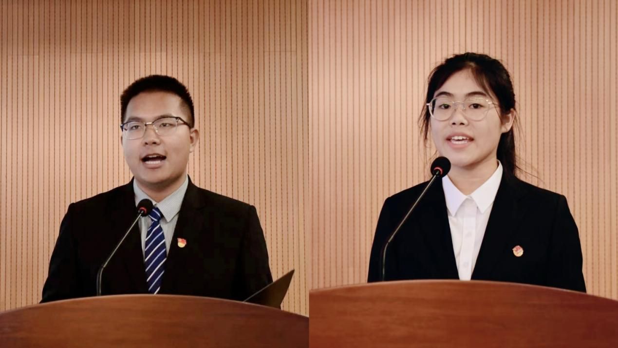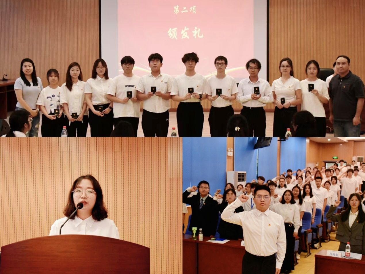 大会最后,举行新团员入团仪式。由木拉提老师与钟唯老师为新团员颁发团员证和团徽,领誓人郭沈凯上台带领全体团员宣誓。新团员代表杨舒然上台发言,她的言语间饱含着对组织的赤诚、对理想的追求,更展现了新时代共青团员的责任与担当。