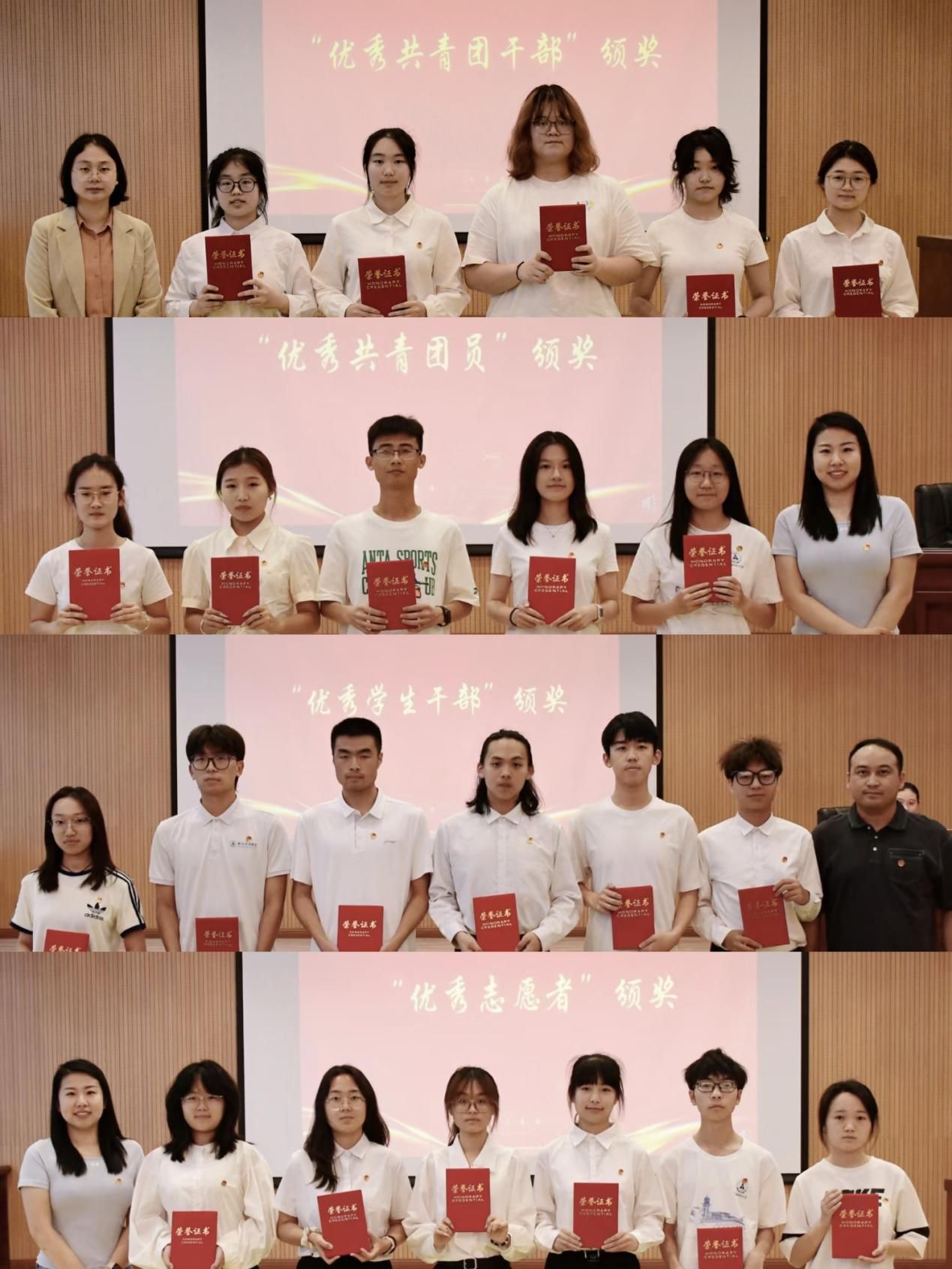 本次大会集中表彰了荣获优秀共青团干部、优秀学生干部、优秀共青团团员、优秀志愿者等称号的同学,院团委书记木拉提代表足球比分球探 团委宣读表彰决定,在场老师为获奖学生代表颁发荣誉证书并合影留念。