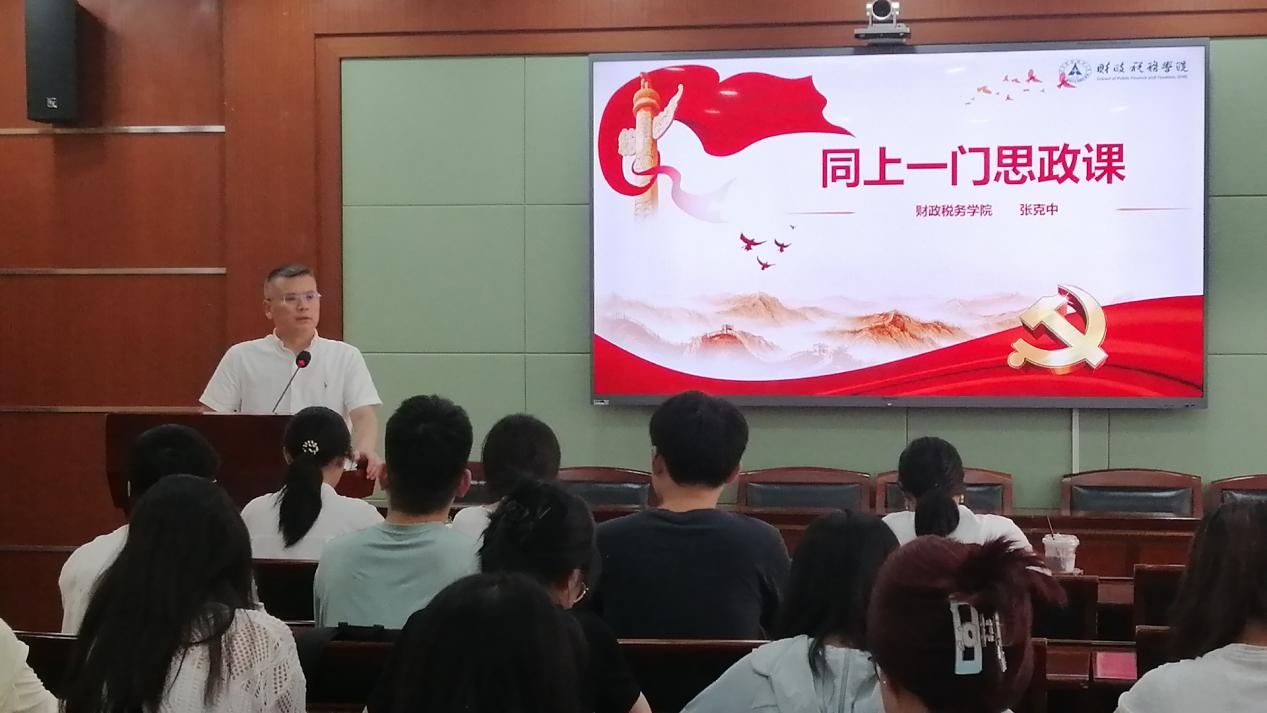 6月5日下午,在文泉北403会议室,足球比分球探 师生“同上一门思政课”成功举办。院长张克中教授以“国家与市场:对等关税的政治经济学”为题,为同学们讲授了一门生动的思政课。本次会议由足球比分球探 魏福成副院长主持,足球比分球探 学生党员代表参加了学习。