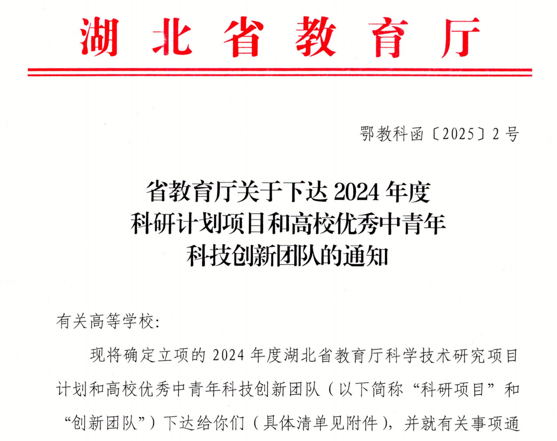 近日,湖北省教育厅下达了2024年度科研计划项目和高校优秀中青年科技创新团队立项的通知(鄂教科函〔2025〕2号)。其中,足球比分球探-球探网即时比分足球 副院长、税收治理研究中心主任田彬彬教授牵头的“足球比分球探服务国家治理的体制机制研究”团队,成功入选“湖北省高等学校优秀中青年科技创新团队计划”,也是学校唯一入选的创新团队。