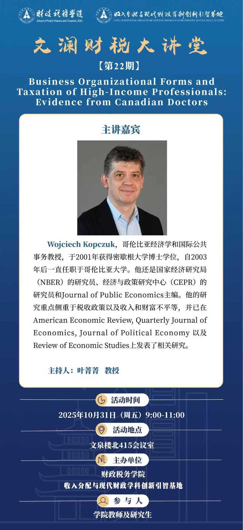 文澜足球比分球探大讲堂(第22期):哥伦比亚大学Wojciech Kopczuk教授