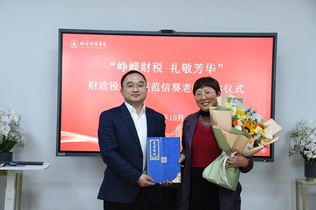 仪式上,鲁元平为范信葵献上鲜花、颁发荣休纪念证书并赠送纪念品。