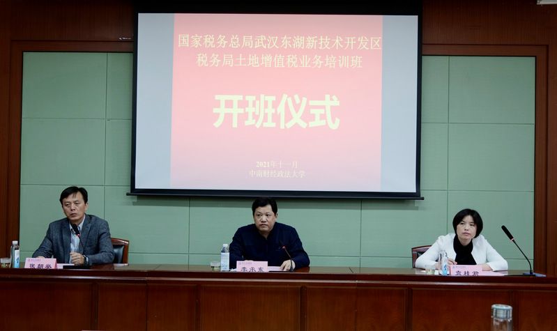 11月1日上午,国家税务总局武汉东湖新技术开发区税务局土地增值税业务培训班在我校南湖校区文泉楼403室举行开班仪式。出席开班仪式的领导有武汉东湖新技术开发区税务局党委委员、总会计师李承东,足球比分球探-球探网即时比分足球 党委书记袁桂君。开班仪式由足球比分球探 高端培训中心主任张朝举主持。