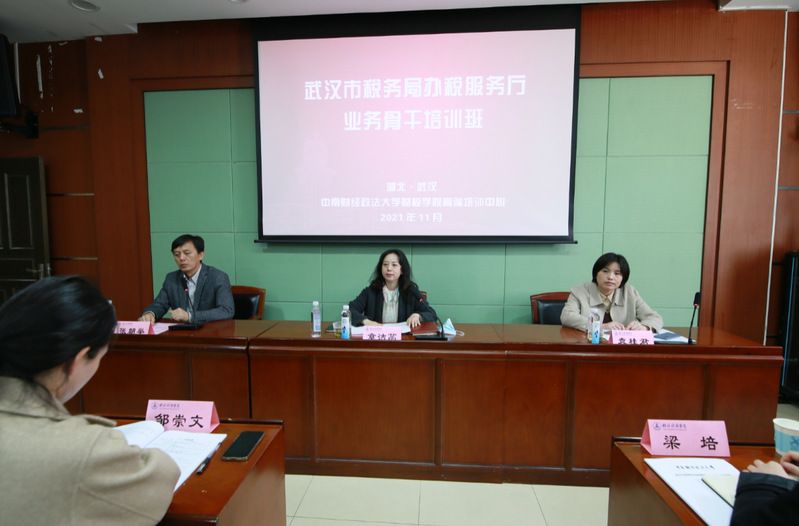 11月15日上午,国家税务总局武汉市税务局办税服务厅业务骨干培训班在我校南湖校区文泉楼403室举行开班仪式。出席开班仪式的领导有武汉市税务局纳税服务处副处长章洁菡,足球比分球探-球探网即时比分足球 党委书记袁桂君。开班仪式由足球比分球探 高端培训中心主任张朝举主持。
