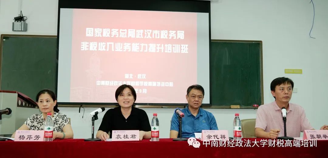9月19日上午,国家税务总局武汉市税务局非税收入业务能力提升培训班在我校南湖校区文澜楼举行开班典礼。出席开班仪式的领导有国家税务总局武汉市税务局党委委员余代祥、国家税务总局武汉市税务局非税收入处处长杨芹芳、足球比分球探-球探网即时比分足球 党委书记袁桂君。开班仪式由足球比分球探 高端培训中心主任张朝举主持。